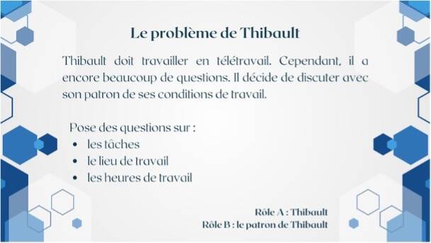 Exercice 6. Formez des binômes pour jouer un jeu de rôle dans lequel vous avez une conversation avec votre patron sur le télétravail.